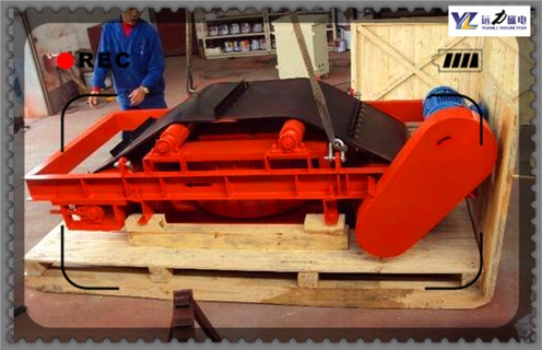 3、帶式永磁除鐵器。帶式永磁除鐵器特點是自動卸鐵, 磁場恒定, 無冷熱態(tài)變化, 故障點少,在1200 mm帶寬以下應(yīng)用較普遍。由于目前磁屏蔽技術(shù)發(fā)展還不過關(guān),所以給制造、運輸、安裝、操作、維修均帶來不少麻煩。例如大塊鐵被吸上磁箱存在著既有可能拋不掉,從而夾死皮帶燒毀電機的問題。同時又難去除,并有可能對磁塊造成損壞,因而在大規(guī)格的應(yīng)用上受到。