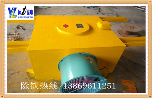 RCDC系列風冷式自卸電磁除鐵器是遠力磁電公司新型研制的一種風冷式電磁除鐵器,RCDA系列干式電磁除鐵器可清除混雜在散狀非磁性物料中的鐵磁性物品.其內部采用電工專用樹脂澆注,自冷式全密封結構,具有磁透深度大,吸力強等特點.它一般安裝于皮帶輸送機的頭部和中部.將混雜在物料中的鐵件吸起,達到清除的目的,保護破碎機.研磨機等正常工作.所以該系列除鐵器廣泛應用于煤炭.電力.礦山.冶金.建材.化工等行業.